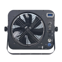 高強度の金属ファンを使用し、静かで滑らかなファンがスモークをムラなく広げるエフェクトファンです。ファンスピードを0〜100%に調節可能で、煙が薄くても場所全体に迅速に煙を広げることが可能です。操作面においては、1CH/2CH のDMX を搭載しており、3pin XLR 端子を本体リア側に装備しています。ハンギングブラケットは三脚として使用可能で、様々な角度設定を行うことができます。吊り設置も可能で、様々な場所に簡単に設置できます。
