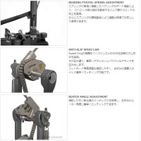 古き良き往年のカム形状を踏襲し、内臓ヒールベアリングの改良、 全体重量を細分化した結果生み出された新ビーター等、LUDWIG技術の結晶ともいうべき一台です。