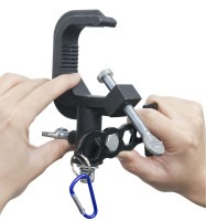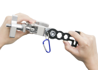 e-lite WS140ESは、照明の灯体を吊り込む現場で必要とされる機能がオールインワンで一式揃ったマルチスパナです。ムービングライトのオメガブラケットの取り外しが容易に行えます。抜け止め用M12・M10・M8 六角ボルト、ウィングナットなど固く締まったネジを緩める/締めることができます。素材は熱処理されたカーボンスチールです。付属のカラビナでいつでも使えるように携帯することができます。