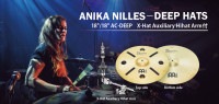 Deep Hats は音楽的に多彩な使い方ができて、メインのハイハットやクラッシュとの間にある「音のギャップ」を埋めてくれます。クラッシュの刻みに近いハーフオープンでも柔らかくクリア。深みのあるトーンとバランスの良い倍音、トラッシュさが結合して、私のスタイルの演奏をするのにこの上ない完璧なシンバルです。 - Anika Nilles