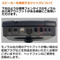 ※モノラル用の出力端子が無い楽器の場合は、こちらのモノラルのアンプではなく、ステレオ仕様のモニターか、