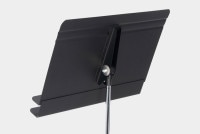 オーケストラ奏者用に開発された譜面台です。譜面部下のラック部分には、弓やリード、オイル、筆記用具などの小物を置くことができます。