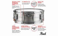 センター部分にビード(帯)加工を施しブラッシュ加工により低光沢に仕上げた1.2mm厚のアルミニウム・シェル。アルミ素材ならではの、乾いたアタックとふくよかな倍音をミックスした温かみのあるサウンドが特徴です。