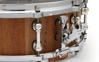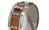 極厚のシェルによる重厚かつパワフルなサウンドが特長の"ステイヴクラフト"スネアドラム。厚さ25mmのシェルは、マカ材の無垢材を丁寧に面取りし、伝統的な "Dado-Loc" ジョイントという方法によって、タイオーク材と組み合わせて成型されます。